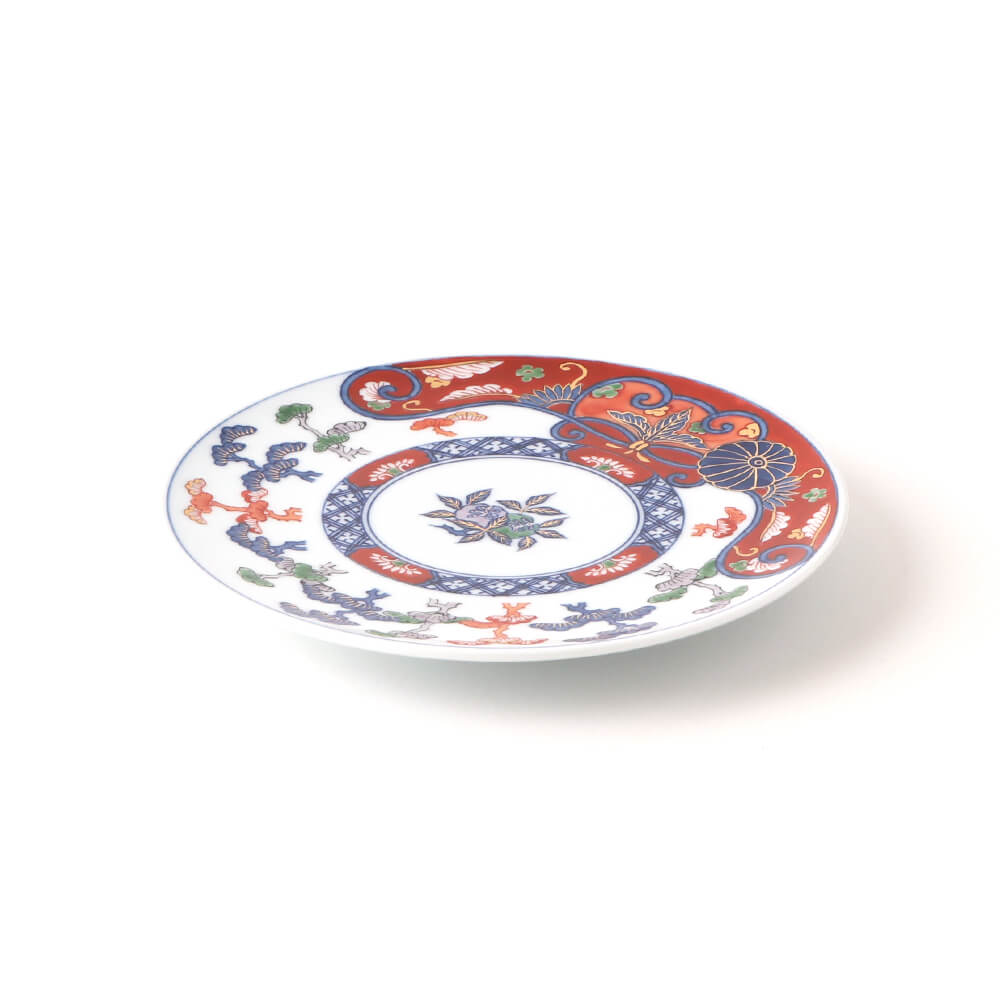 As you use or display this plate, take a moment to appreciate the intricate detailing of the design. The central floral motif, surrounded by elaborate patterns and stylized pine branches, creates a sense of balance and natural beauty that is characteristic of traditional Japanese ware.