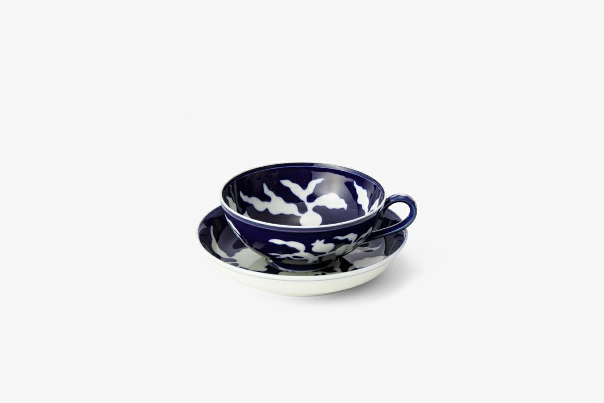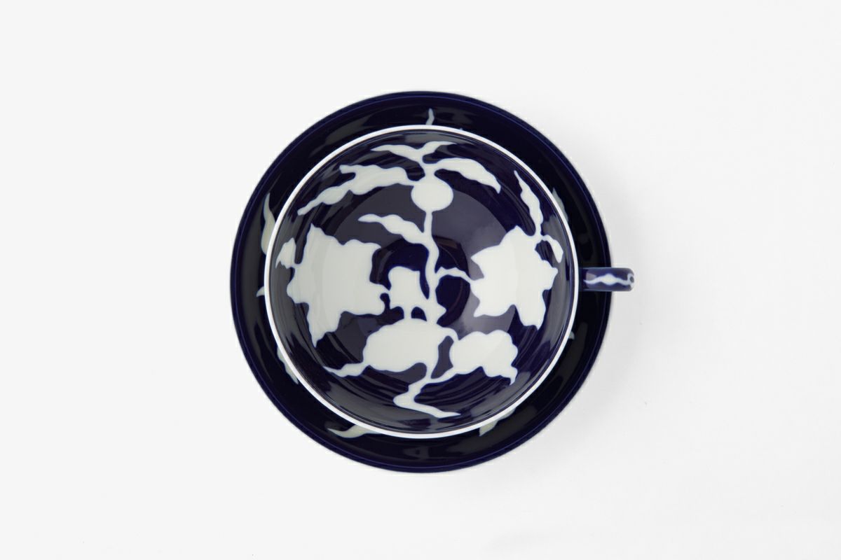 Artisanal Japanese Tea Cup and Saucer Set - Midnight Blue Floral Elegance