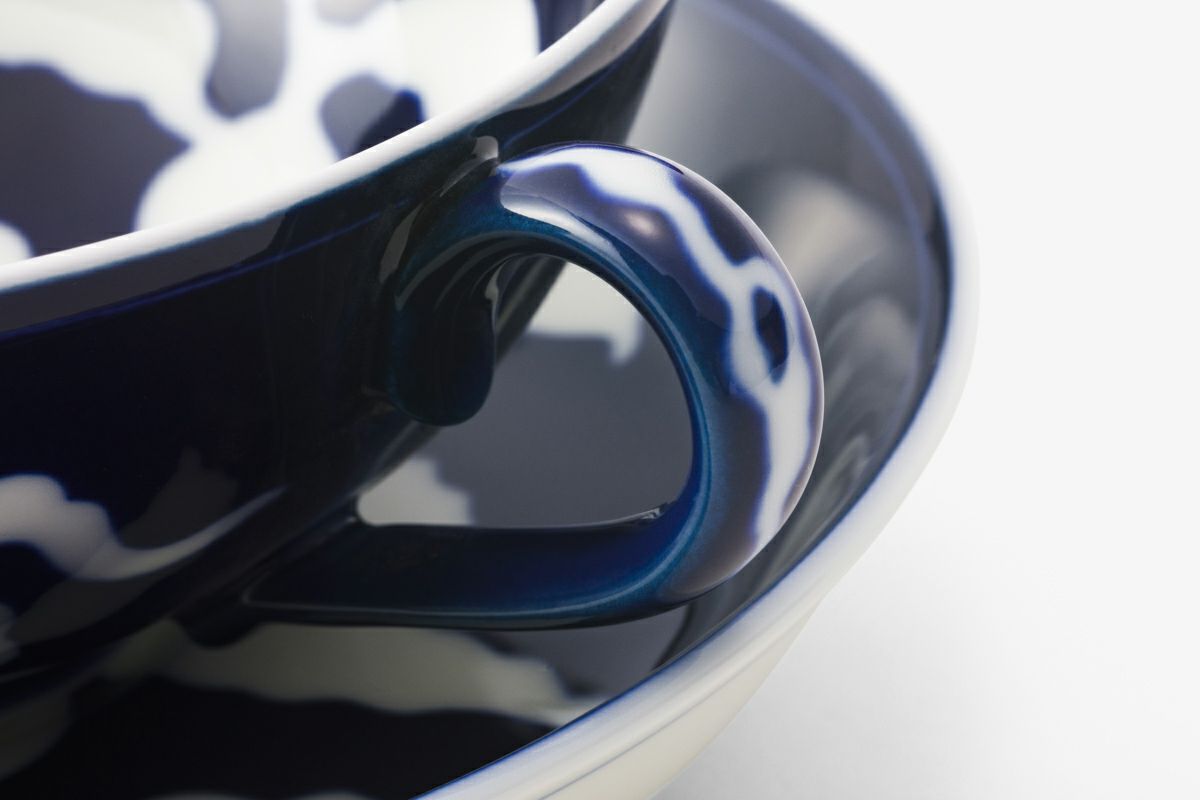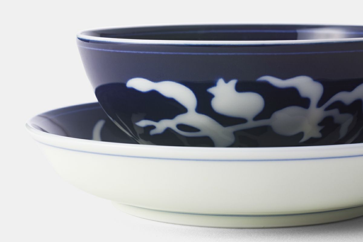 Meticulously crafted by master artisans in Japan, this set embodies the perfect harmony between traditional techniques and contemporary aesthetics. The deep, rich blue glaze provides a dramatic backdrop for the intricate white floral design, created using a skillful resist technique that allows the pure white porcelain to shine through.