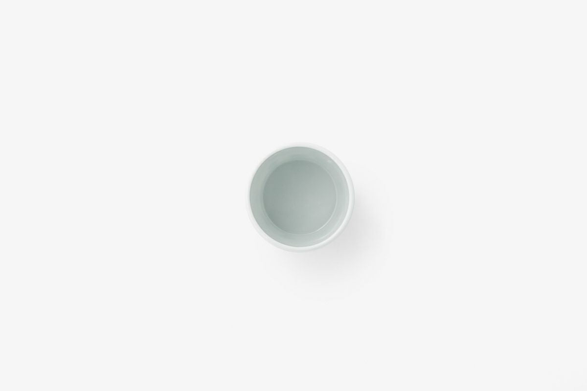The cup's straight sides and slightly tapered base provide a comfortable grip, while the smooth rim ensures a pleasant drinking experience. The interior of the cup is glazed in a soft, light blue, complementing the exterior design and providing a serene backdrop for your food or drink.