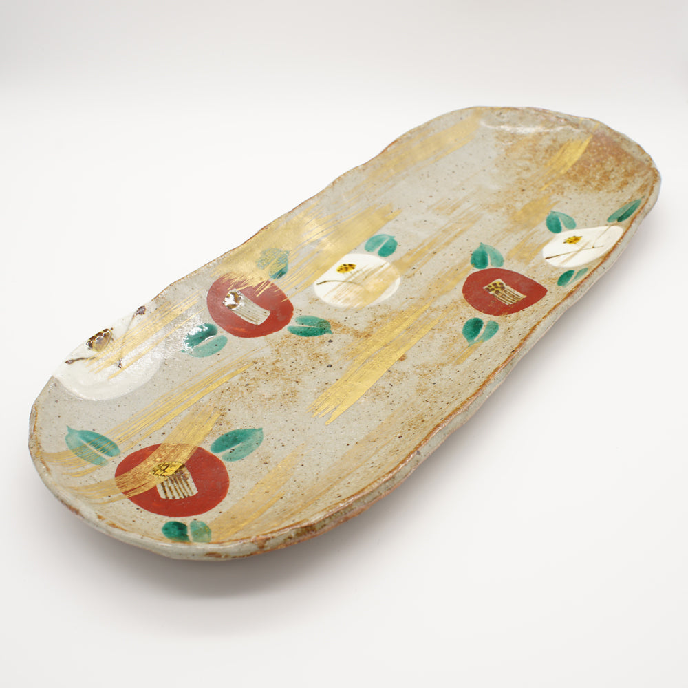 Golden Blossom Elongated Serving Platter - Rosanjin Inspired