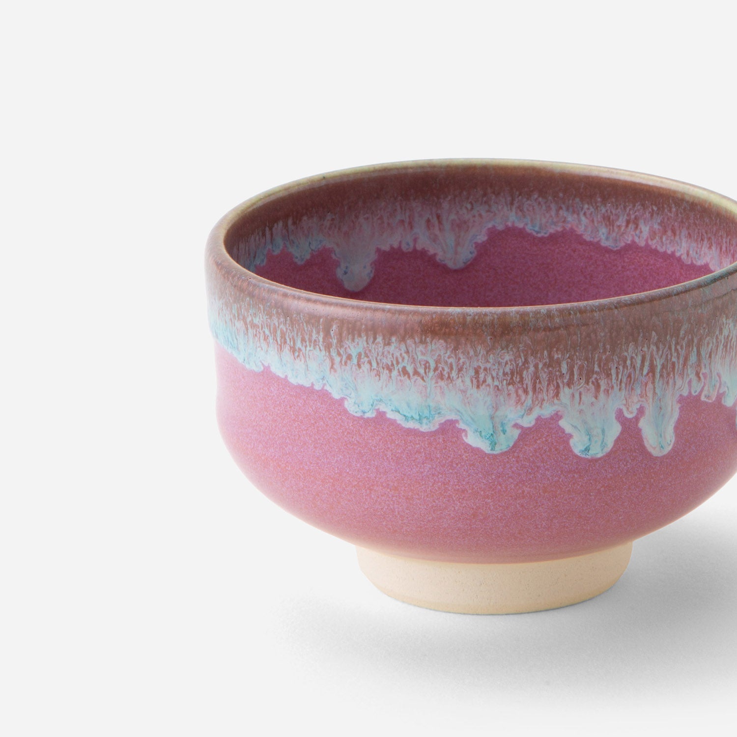 Immerse yourself in the artistry of Japanese tea ceremony with our stunning pink glaze matcha bowl. This handcrafted chawan showcases a mesmerizing blend of colors, featuring a vibrant pink base adorned with cascading teal and cream glazes reminiscent of a serene waterfall.