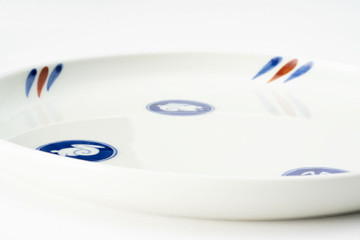 Bring a touch of whimsy and traditional Japanese charm to your table with our Moonlit Rabbit Oval Plate. This delightful piece features a playful design that captures the beloved motif of rabbits viewing the moon, a classic theme in Japanese folklore and art.