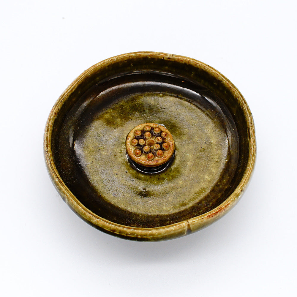 At the center of the bowl sits a small, raised platform designed to hold your incense stick securely. This central element is finished in a complementary earthy tone, seamlessly integrating with the overall design while providing practical functionality.