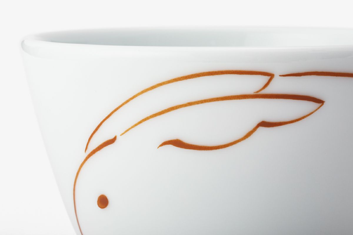 The cup features a striking minimalist design that captures the essence of Japan's beloved cherry blossom (sakura). A single, graceful line in a warm terracotta hue depicts a stylized rabbit, its long ear forming the delicate curve of a cherry blossom petal. This clever fusion of animal and floral motifs showcases the artisan's creativity and pays homage to the Japanese appreciation for nature's beauty.