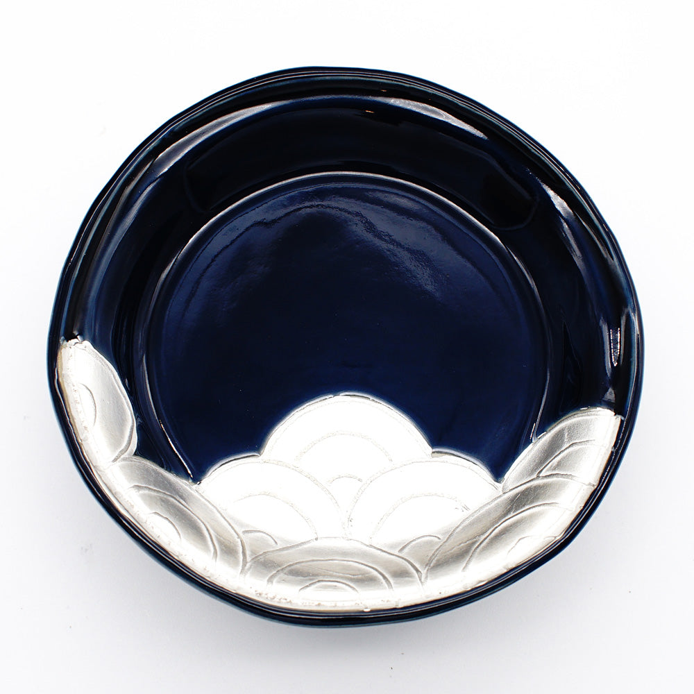 Crafted by skilled Japanese ceramicists, each plate is a unique work of art. The combination of the rich blue glaze and the silver accents makes this piece versatile enough to complement both traditional and modern table settings.
