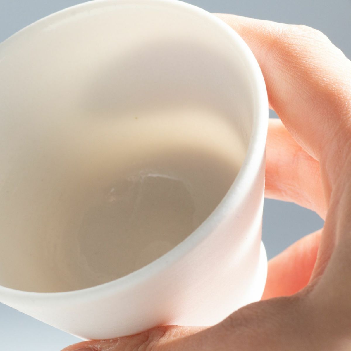 Unlike traditional porcelain, this Shigaraki cup is crafted using a special clay mixture developed in 2009 at the Shigaraki Ceramic Research Institute. With a light transmittance 2.5 to 3 times greater than that of porcelain, this pottery allows light to pass through even with its substantial thickness. The texture is slightly rough to the touch, offering a warm, tactile experience unique to ceramic ware.