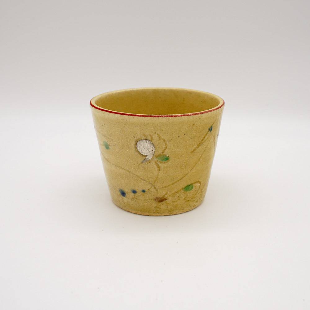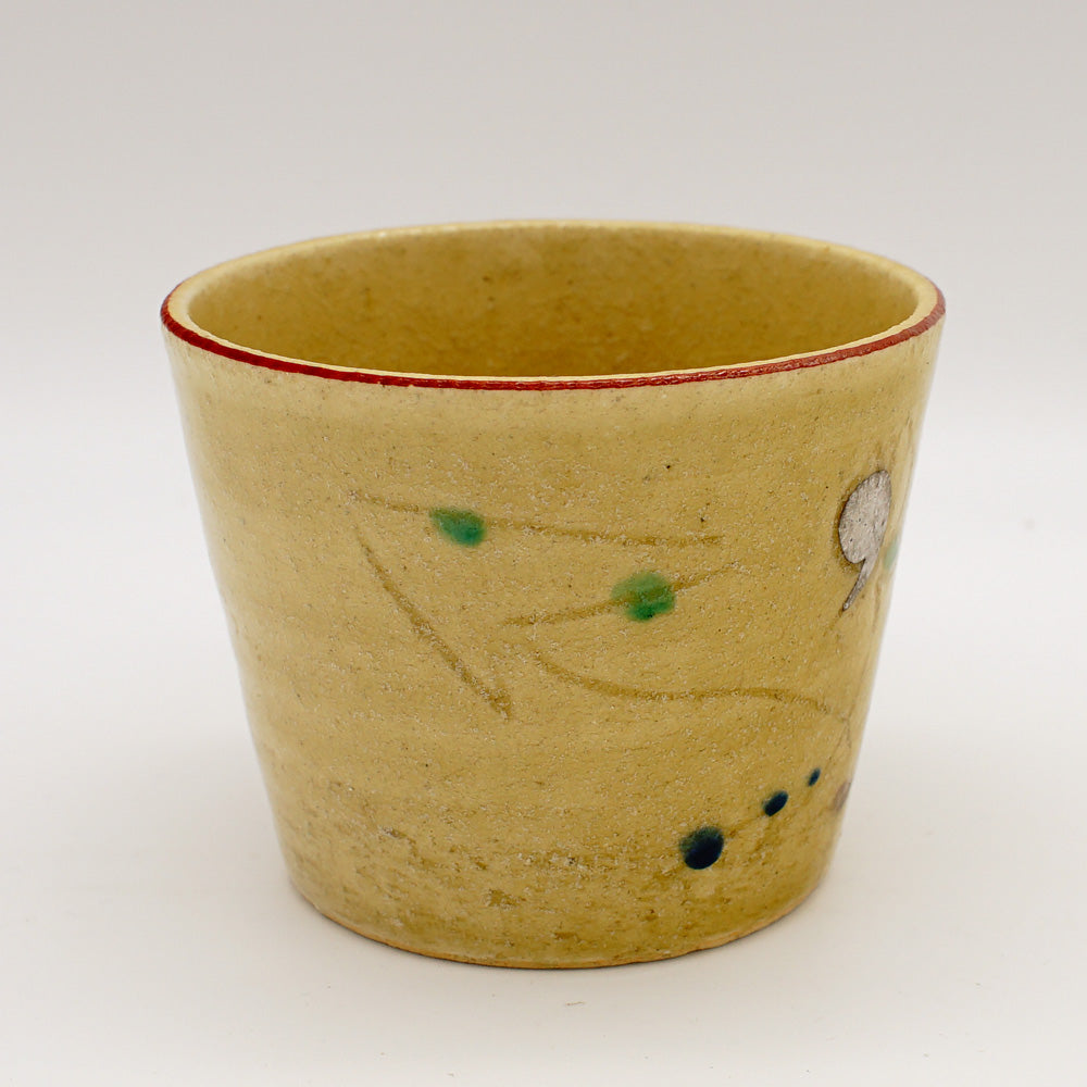 Yellowish Seto Ware Soba Cup with Grass Pattern